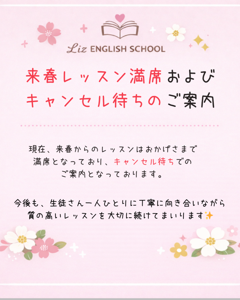 ありがたいことに、来春からのレッスンもすべて満席となりました🌸 たくさんのお問い合わせ、本当にありがとうございます。